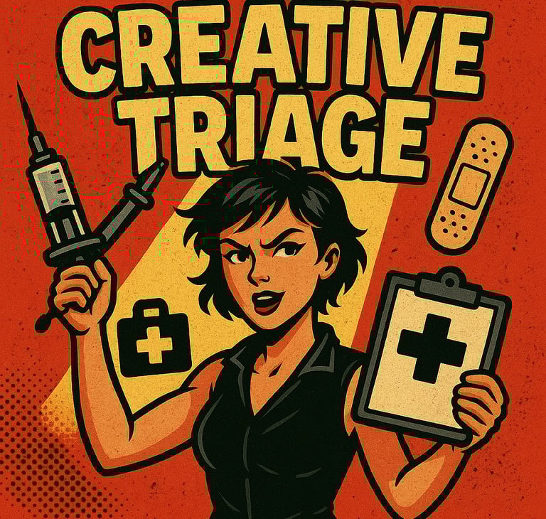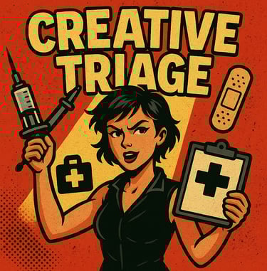 Creative Triage is your ER for when your message misses, your visuals fall flat, or your brain just hits a wall. Whether it’s a design problem, a foggy plan, or a personal block that’s holding everything hostage—we’ll cut through it. Quick fixes, sharp problem-solving, and zero fluff.